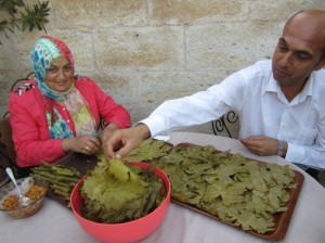Making stuffed vine leaves |